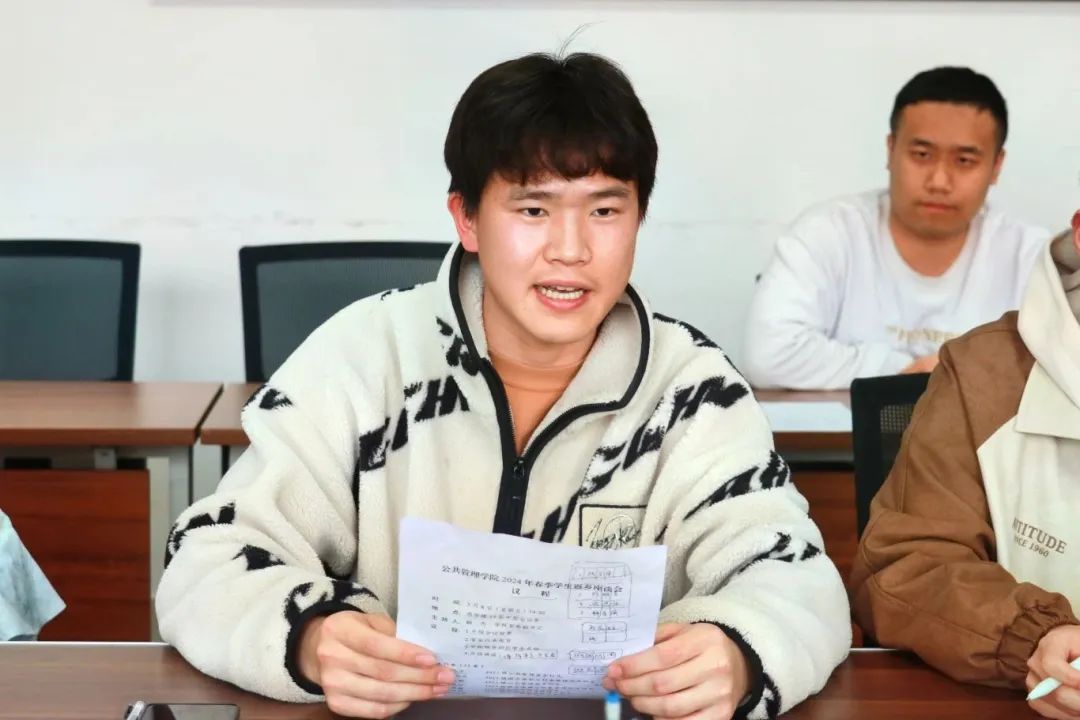 为全面了解新学期学生思想动态,扎实做好学生思想政治教育和管理服务工作,3月8日下午,公共管理学院于西学楼13层中型会议室组织召开了2024年春季学生返乡座谈会。学院党委副书记韩杰、团委书记陈露、2023级本科生辅导员苏林参与了座谈会。座谈会由公共管理学院党委副书记韩杰主持。