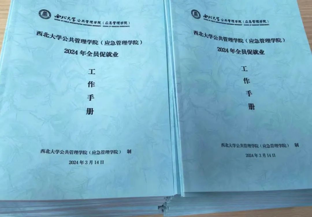 会前,学院制作了《公共管理学院2024年全员促就业工作手册》,发放给学院每位教师。《工作手册》包含学校和上级相关文件、学院全员促就业工作方案、岗位职责、宣讲提纲以及师生结对促就业名单。