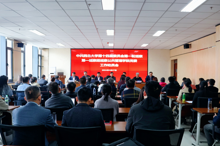根据学校党委的统一部署,2024年3月27日,中共西北大学第十四届委员会第一轮巡察第一巡察组巡察公共管理学院党委工作动员会召开。校党委书记、巡察工作领导小组组长蒋林,校党委副书记、巡察工作领导小组副组长赵作纽,党委巡察办主任刘景钱,第一巡察组全体成员,公共管理学院党政领导班子成员、党委委员、党支部书记,系主任、副高职称及以上人员、党代会和教代会代表、党外人士代表,学院工会委员、团委委员、青年教师代表、行政教辅人员代表、学生会(研究生会)主席团成员和学生代表等参加会议。会议由公共管理学院党委副书记、院长雷晓康主持。