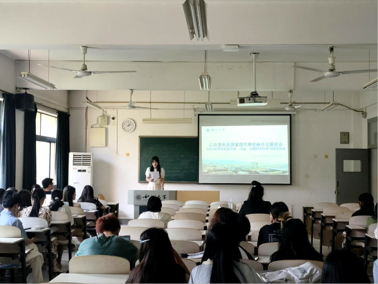 公共管理学院公共信息资源管理系跨级主题班会于2024年6月5日14:00在2号教学楼2306教室召开,此次主题班会旨在搭建一个学习交流的平台,让2020级图书馆学档案学专业优秀本科毕业生代表分享他们的升学、深造、出国和本科学习的宝贵经验,为在座的同学们提供一份宝贵的参考和借鉴。此次会议由2023级MLIS图书情报专业硕士研究生王若桢主持。