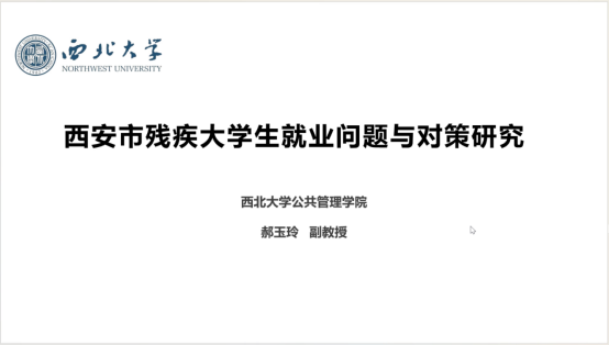 郝玉玲副教授汇报的题目为《残疾人高质量就业的几点思考》。汇报首先介绍了我国残疾大学生的就业政策背景,主要包括省级出台的政策如就业岗位补贴政策,就业社会保险补贴政策,按比例安置残疾人奖励政策以及就业创业个体就业扶持政策等。接着围绕残疾人就业的理论研究进行了回顾,一是残疾人就业难的理论分析,提出残疾人就业难是市场经济面临的普遍挑战,我国市场经济加速了残疾人的市场边缘劣势;二是残疾人就业难的政策应对,重点包括福利保障型残疾人政策、机会平等型残疾人政策在内的两大类政策工具,同时关注了我国残疾劳动力的市场边缘化对残疾人政策结构的影响趋势。最后,郝副教授提出了基于残疾人按比例就业精准帮扶残疾大学生就业的基本观点。