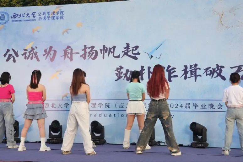 灯光交织成梦,音乐跃动心灵,青春在此刻璀璨绽放。西北大学公共管理学院2024届毕业晚会于6月17日在东操场成功举办。主持人以满腔热情点燃会场,掌声与欢呼交织成海,共同期待与憧憬着新篇章。
