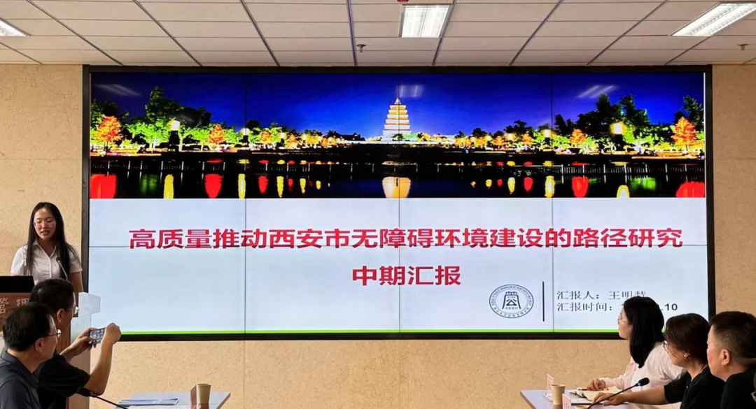 西北大学公共管理学院雷晓康教授团队成员王明慧就《高质量推动西安市无障碍环境建设的路径研究》项目展开汇报。项目组成员采用文本分析、深度访谈和问卷调查等研究方法,深入了解了西安市无障碍环境建设的现状以及公众的满意程度,用严谨的调研数据作为论证支撑,得到了残联各位领导的认可。下一步,项目组成员将不断深化、细化、完善报告内容,提出更加具有针对性、可操作性的建议,以期能更好地推动西安市无障碍环境建设的高质量发展。