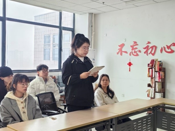 11月12日,研究生社会保障学系党支部在西学楼北1515会议室召开了心得交流会。党支部书记安阳同志指出,“作为新时代的青年,我们肩负着弘扬中华优秀传统文化、讲好中国故事的历史使命”,并鼓励每位党员同志树立正确的文化观,努力成为新时代中华优秀文化的继承者、创新者和传播者。随后,正式党员王宣伊同志、中共预备党员吴雨蔚同志以及入党积极分子贺妍、王苗苗同志分别就参与主题党日活动后的心得体会进行了分享。