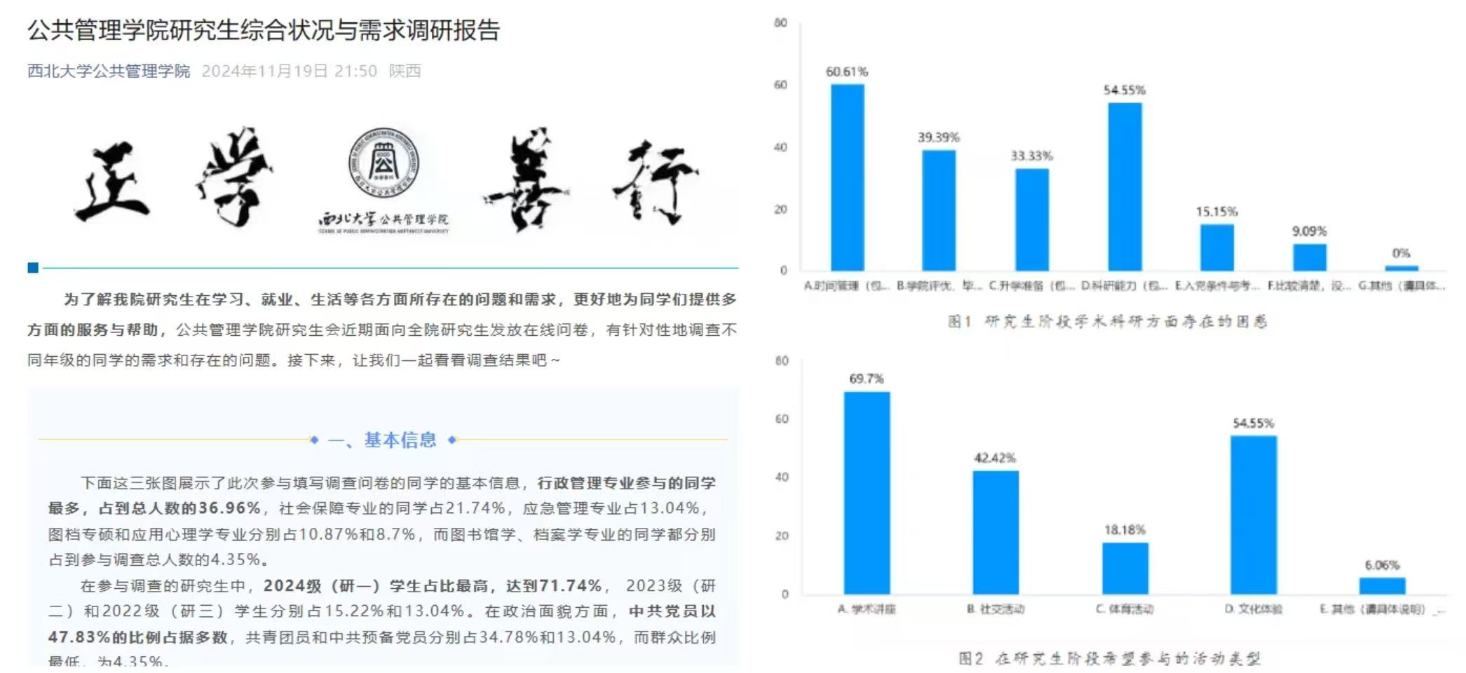 为提升学生的科研水平及论文撰写能力,激发学术热情,拓宽学术视野,公共管理学院组织了2024年陕西省高校公共管理研究生论坛暨第十届“启航杯”征文比赛,以“数字时代政府变革与公共服务创新”为主题,激励学生们依据自身研究方向撰写文章,展示自己的研究成果,拓宽其学术视野,激发了学生的学术热情。