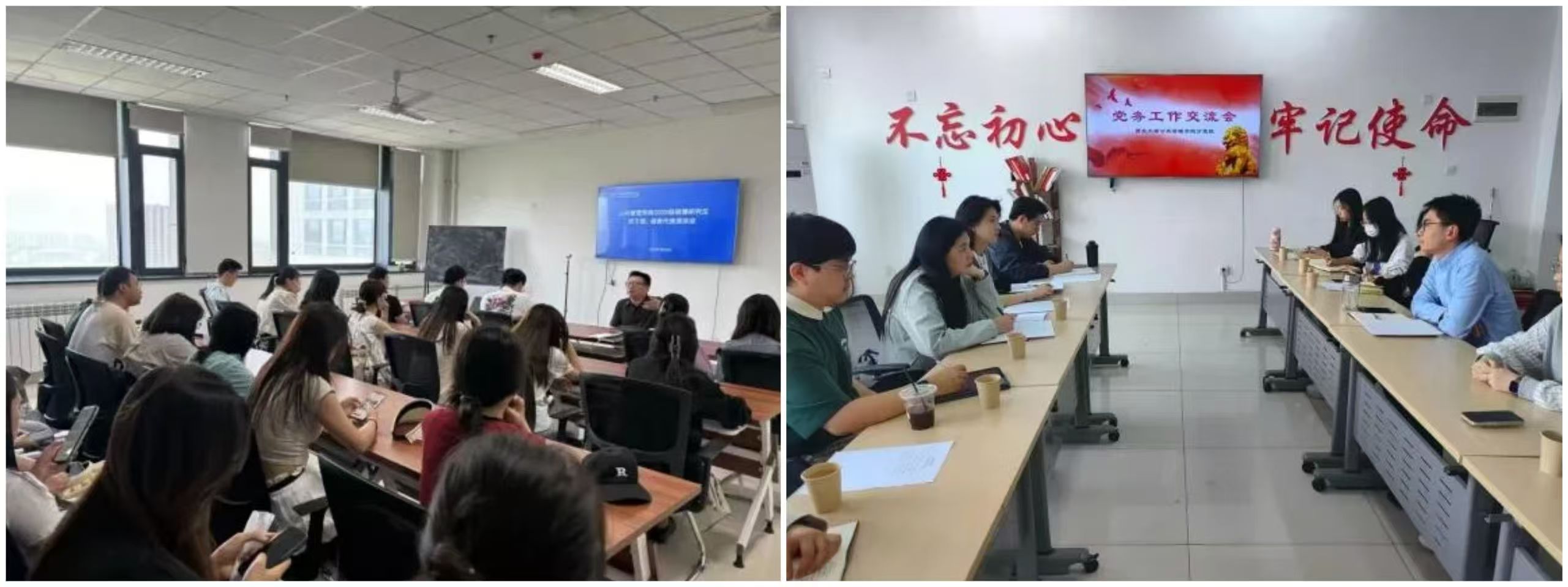 为进一步加强互学互鉴、共同提高,认真贯彻落实党中央指示精神,高质量做好党务工作,公共管理学院分党校与文化遗产学院党务工作开展党务工作交流,通过相互学习交流,了解了彼此工作的优秀做法与独特经验,提升党务工作水平;为落实《关于巩固高校学生会(研究生会)改革成果的若干措施》,学院研究生会开展述职评议会以及作风警示教育会议,帮助研究生会成员进一步掌握工作方法,完善研究生会制度建设;学院召开研究生班干部座谈会,研究生辅导员从“学风、生活、安全”三个方面与大家展开交流,详细了解学子适应情况,建立起师生之间沟通桥梁,同时加强了研究生班干部队伍建设。