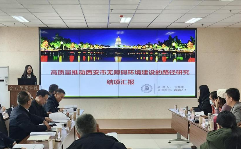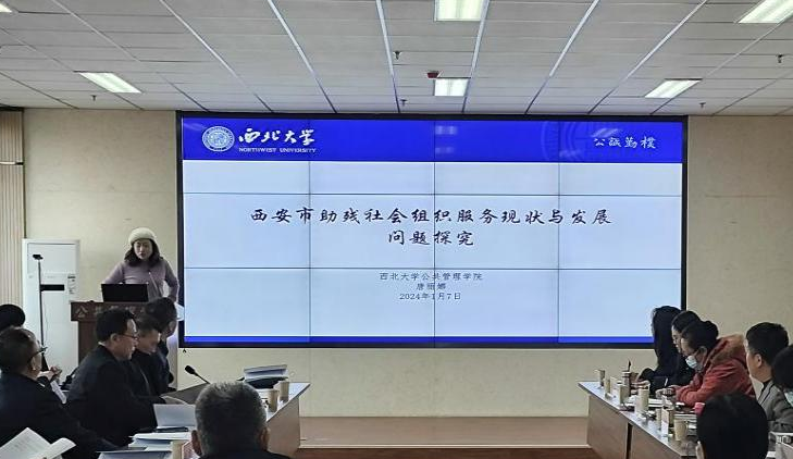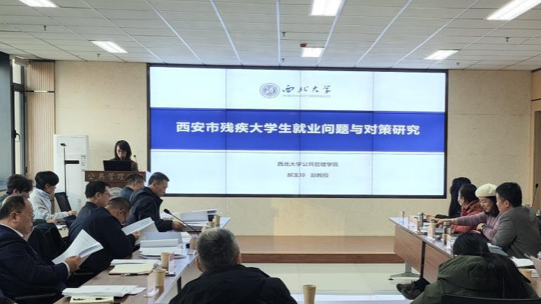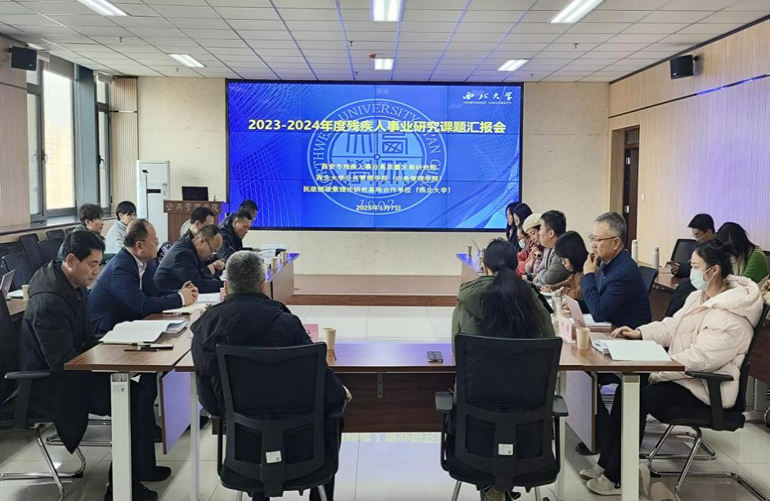 为促进西安市残疾人事业高质量发展,进一步加强残疾人事业理论和实践研究,2025年1月7日下午,由西安市残疾人事业高质量发展研究院、西北大学公共管理学院(应急管理学院)和民政部政策理论研究基地合作单位(西北大学)主办的西安市残疾人事业高质量发展研究院2023-2024年度研究课题结项汇报会在西北大学公共管理学院(应急管理学院)举行。会议由西安市残疾人事业高质量发展研究院常务副院长、西北大学公共管理学院副教授唐丽娜主持。西安市残疾人联合会党组书记、理事长荣亮,西安市残疾人联合会党组成员、二级巡视员、副理事长何永国,西安市残疾人联合会党组成员、副理事长樊颖,西安市残疾人联合会党总支专职副书记苟旭峰,西安市残疾人联合会维权处处长彭文峰,西安市残疾人联合会组联处副处长梁晓鹏,西安市残疾人联合会劳动就业服务中心主任赵文,西安市残疾人事业高质量发展研究院院长、西北大学公共管理学院(应急管理学院)院长、教授雷晓康,西北大学经济管理学院教授、博士生导师惠宁,西安市残疾人事业高质量发展研究院学术委员会委员、教授许琳,西北大学公共管理学院(应急管理学院)副教授郝玉玲,西北大学公共管理学院(应急管理学院)以及西北大学经济管理学院的相关学者及博硕士生等二十余人参加了本次座谈会。