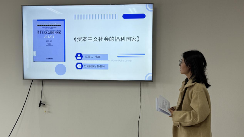 2023级社会保障专业硕士研究生张苗分享的书籍是米什拉的经典著作《资本主义社会的福利国家》。她从作者介绍与写作背景、福利国家的三个阶段、社会政策和新模式以及个人思考四个方面展开分享。首先,她简要介绍了作者米什拉和这本书的写作背景。其次,对福利国家三个发展阶段进行概述,分别为1950-1975年凯恩斯主义福利国家的黄金期,1975-1980年的危机阶段,以及1980年后市场化改革时期。同时比较了新保守主义与社会民主合作主义模式,揭示了不同福利制度的路径差异。再次,分析了加拿大和澳大利亚两个国家的社会政策和新模式,指出二者的福利政策都注重提供普遍性的社会服务和致力于维持贫困人口的最低生活标准等,但政策也根据本国国情有不同的特点和需求。最后,在个人思考部分,她提出福利国家的界定不是单一的,而应根据不同的特性——如充分就业水平、福利计划的普遍性以及再分配的财政问题进行判别;同时借鉴资本主义国家的福利制度,提出我国在人口老龄化背景下应采取加强社会保障体系建设、注重社会公平与正义以及促进经济增长与就业等积极措施。