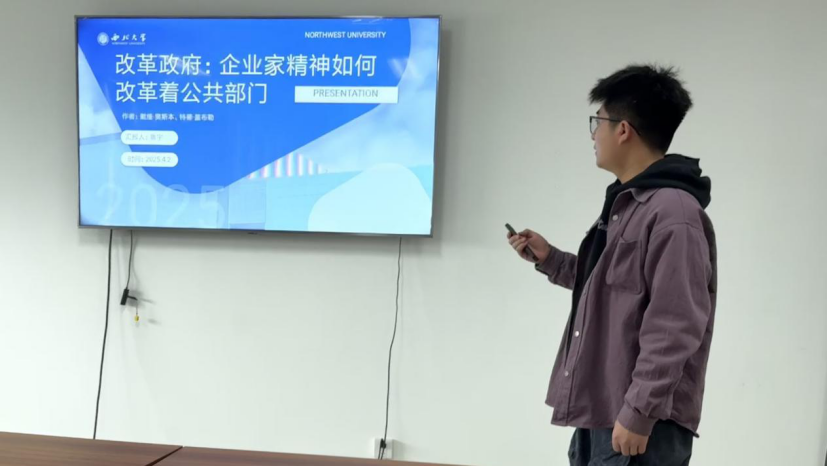 2025年4月2日,我院在西学楼北1308举办了2025年第5期正学读书会。西北大学公共管理学院2023级行政管理专业硕士研究生孙思维、2023级行政管理专业硕士研究生任莹、2024级行政管理学专业硕士研究生吕超、2023级社会保障专业硕士研究生张苗、2023级行政管理专业硕士研究生顾文蕾、2023级行政管理专业硕士研究生鲁宇、2024级社会保障专业硕士研究生王宣伊分别作为主讲人进行读书汇报,公共管理学院2024级博士研究生郑冰茹担任评议人,部分研究生旁听了此次报告会。