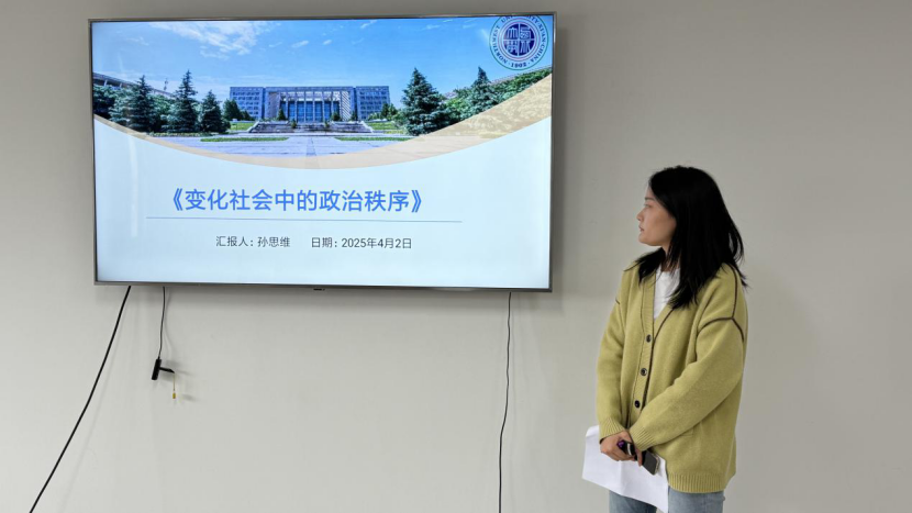 2023级行政管理专业硕士研究生孙思维分享了塞缪尔·亨廷顿的《变化社会中的政治秩序》。她的汇报分为作者简介、写作背景、核心观点与阅读感悟四个部分。首先,她简要介绍了作者的学术主张和经典著作,并对本书的现实背景和学术背景进行简明介绍。其次,她从整体结构、理论框架和研究取向等方面概括了本书的大致内容。再次,她就本书中的核心观点进行讲解,对政治稳定、政治现代化等核心观点进行细致的梳理。最后,她对建立政治秩序和扩大政治参与两方面分享了自己的感悟。