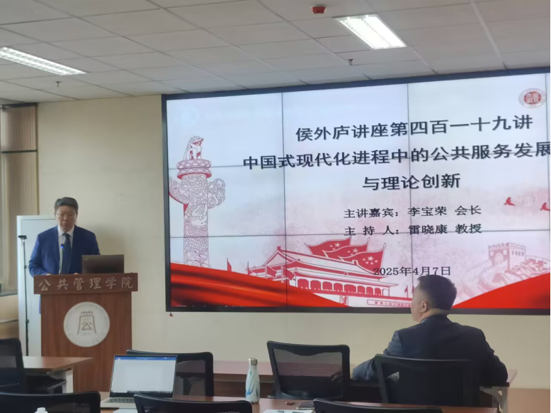 2025年4月7日下午16时,西北大学社科处和西北大学公共管理学院(应急管理学院)联合举办的第419讲“侯外庐学术讲座”在西学楼13层多媒体会议室成功举办。曾任国务院副秘书长、国家机关事务管理局局长,现任中国行政管理学会会长、《中国行政管理》编委会主任的李宝荣先生受邀进行了以“中国式现代化进程中的公共服务发展战略与理论创新”为题的学术报告。公共管理学院(应急管理学院)院长雷晓康教授主持了本次讲座。雷晓康教授代表学院对李宝荣会长的莅临表示了诚挚的欢迎和衷心的感谢。