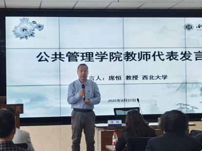 席恒教授分享了与申老师的过往经历,他认为,申老师应是西北大学公共管理学学科的奠基人。申老师在担任系领导期间,注重培养和鼓励年轻教师,前瞻性地设立行政管理专业,大力发展师资队伍,强调基础性和学理性研究,对自己的学术生涯产生了深远影响。在自己学术研究和职业选择的关键节点,申老师都给予了宝贵的指导和建议。