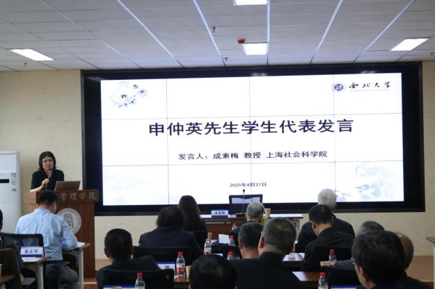 公共管理学院党委书记窦争光首先介绍申仲英教授生平与贡献。申仲英(1936年12月—2024年4月27日),男,河南省禹县人,中共党员,西北大学教授。1981年3月调入西北大学工作,1997年12月光荣退休。曾任西北大学原哲学系副主任、主任,原管理科学与哲学系主任,兼任国家高校人文社会科学规划学科评议组成员、中国自然辩证法研究会理事、陕西省自然辩证法研究会理事长、陕西省哲学学会常务理事等,为西北大学哲学学科的建设与发展做出了突出贡献,是西北大学公共管理学科建设的奠基人。在自然辩证法、科学技术哲学、管理学、教育学等方面都取得了重要的学术成就,著有《高层管理导论》《认识系统与思维的信息加工》等专著,编著了在国内有广泛影响的《自然辩证法概论》教材,在《哲学研究》等期刊发表多篇学术论文,承担多项国家社科基金、教育部人文社科基金项目,曾荣获陕西省哲学社会科学和教学优秀成果奖等各级各类奖励,是我国科学技术哲学领域的当代著名学者和重要领军人物,“全国优秀教师”称号获得者、享受国务院特殊津贴专家。