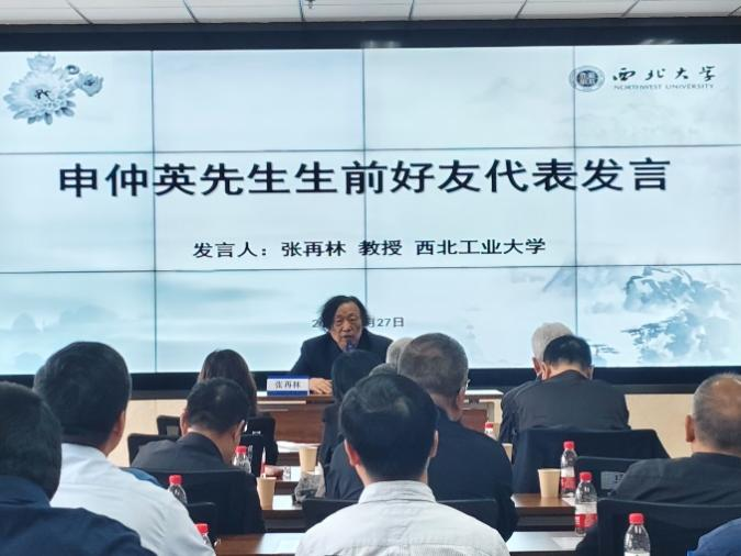 随后,西北工业大学张再林教授作为申仲英先生生前好友代表发言。他深情追忆了与申老师的深厚情谊。谈到自己初到西北大学时深受申老师关心和器重,在申老师的鼓励下,担任哲学教研室主任等职务。离开西北大学后,二人仍保持着密切的学术交流,特别是在探讨哈贝马斯思想与行政管理学关系时,申老师的独到见解令他深受启发。
