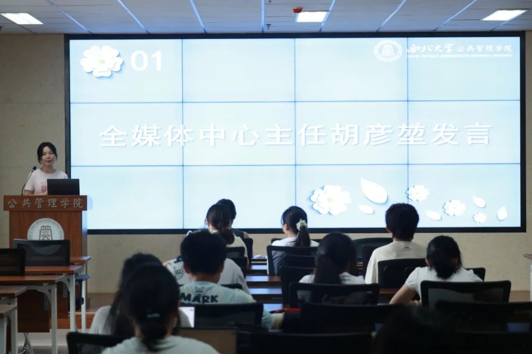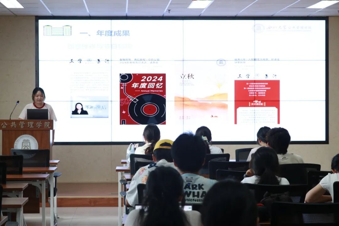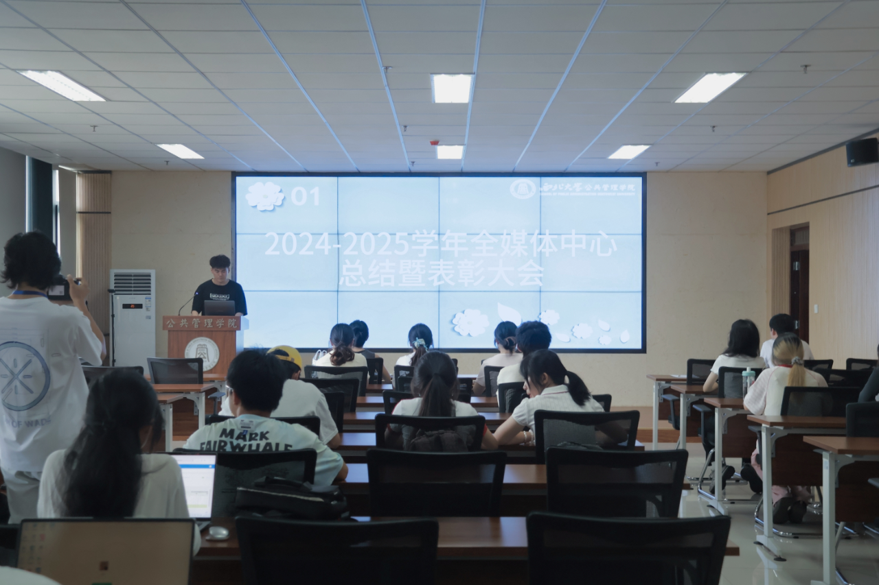 2025年6月20日12时30分,公共管理学院全媒体中心2024-2025学年度总结表彰暨换届选举大会于西学楼13层多媒体会议室举办,全媒体中心指导老师杨琬钰及全体成员参会,会议由秘培组副组长刘祤禛主持。