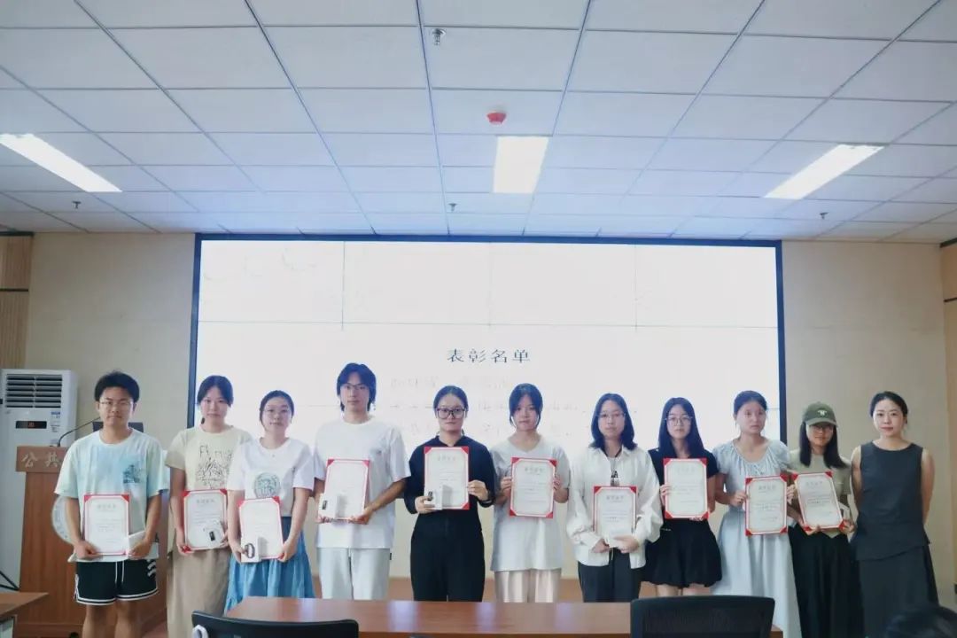 杨琬钰老师为获得本学年“工作优胜奖”的同学颁发荣誉证书和奖品,并合影留念。