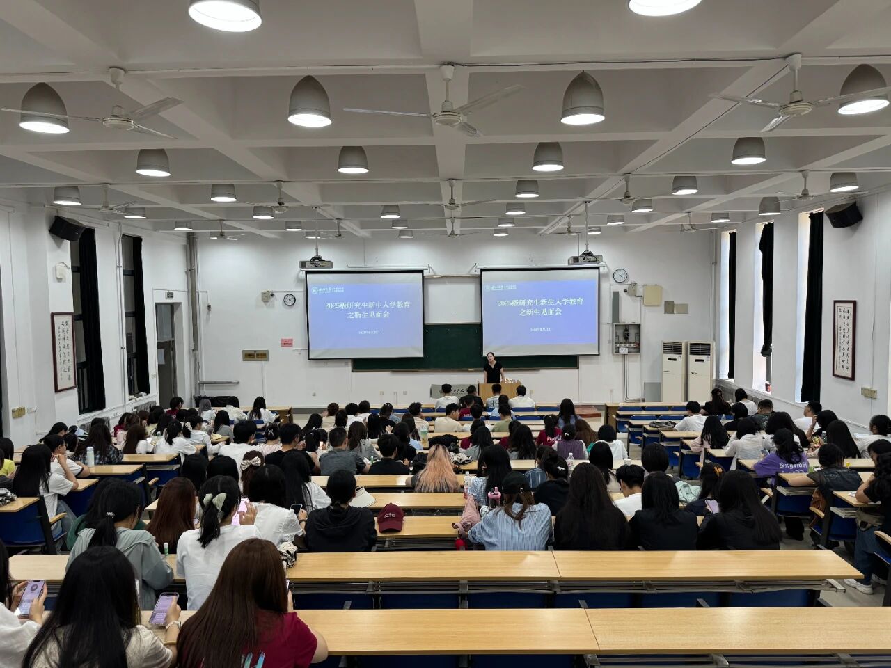 丹桂飘香季,青春启航时。为帮助2025级研究生新生尽快适应研究生生活,明确学习目标,8月31日下午,我院在西北大学长安校区2号教学楼2J201教室举办了2025级研究生新生见面会。会议由2025级研究生辅导员杨嘉仪老师主持,全体143名研究生新生齐聚一堂,共同开启这场学术与梦想的新征程。