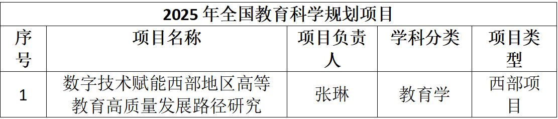 在国家社会科学基金和国家社会科学基金教育学项目申请中,学院共有22位教师申报,经过数次打磨申报书和线下论证会最终3人立项。其中曹蓉教授获得了国家重点项目。具体项目为:曹蓉教授申报的《应急决策中人工智能“双刃剑”效应的生成机理与治理策略》、任宗哲教授申报的《社区治理中“数字悬浮”的形成机理与治理路径研究》和张琳副教授申报的全国教育科学规划项目《数字技术赋能西部地区高等教育高质量发展路径研究》。