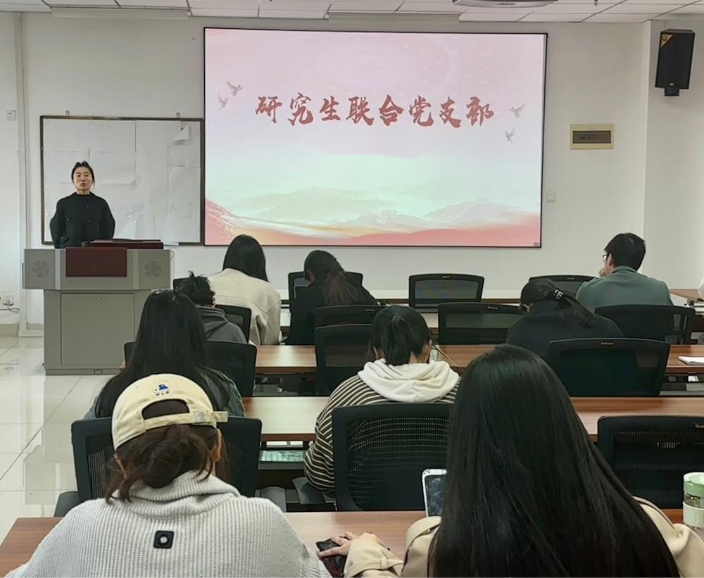 为深入学习贯彻党的二十届四中全会精神,切实把支部成员的思想和行动统一到党中央决策部署上来,2025年10月26日,研究生联合党支部于西学楼1609教室组织全体党员开展专题学习活动,由纪检委员王紫寒同志领学,推动全会精神入脑入心,引导支部成员在学思践悟中汲取奋进力量。