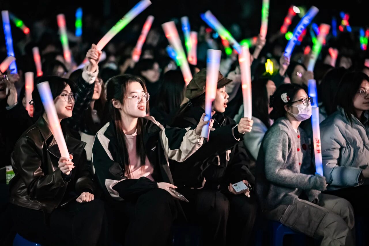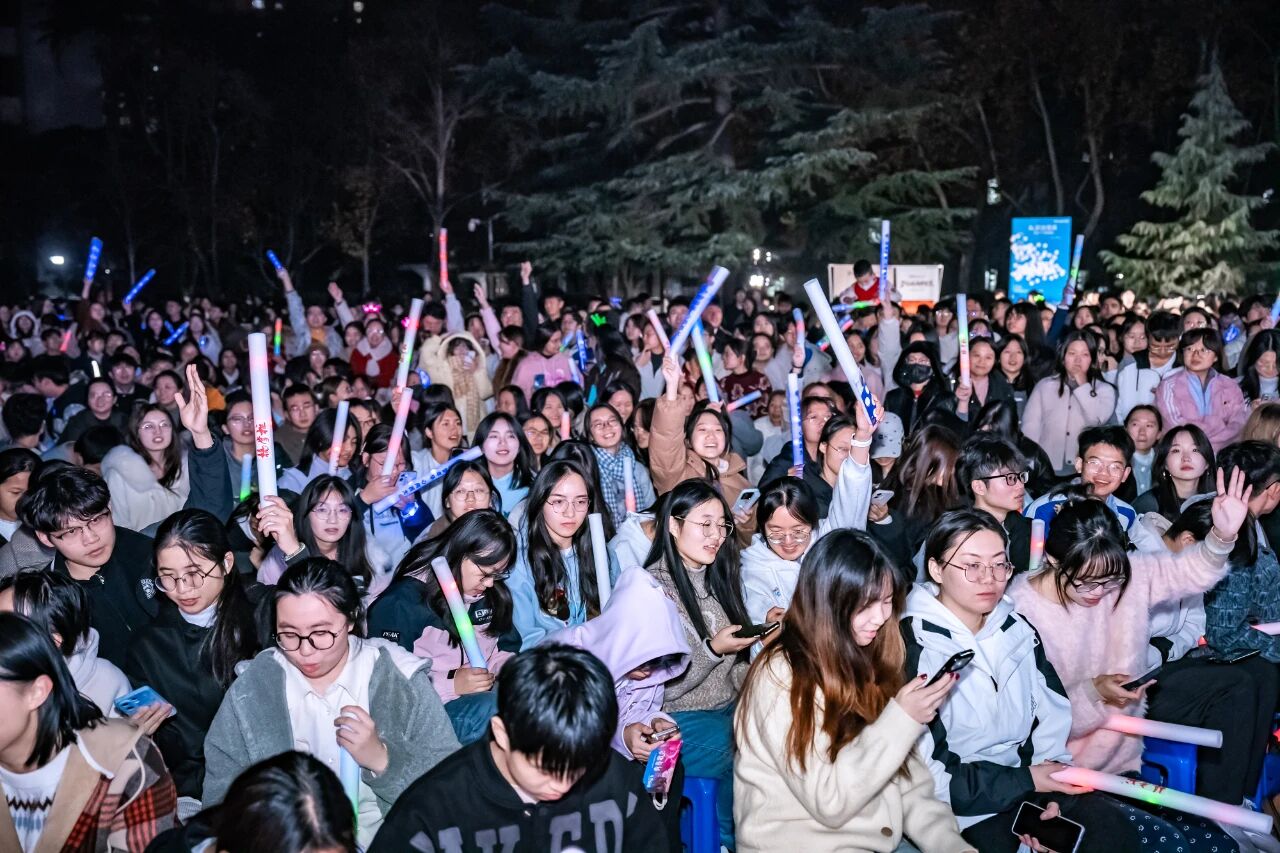 昨晚的青春歌会,是大学生活最鲜活的注脚。晚风拂过草地,舞台上乐队轮番献艺,从我的未来式到NWU,音符撞碎夜色。荧光棒汇成璀璨星海,欢呼与合唱此起彼伏,西大新生伙伴因旋律并肩摇摆。没有束缚,只剩纯粹的热爱与共鸣,这不仅是视听盛宴,更是属于西大人的独家记忆,让青春在音浪里永远滚烫。