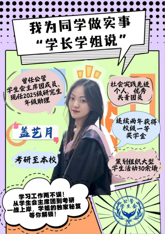 考研与考公,既是深耕专业、实现进阶发展的核心路径,也是锤炼心志、积淀学识、拓宽人生可能的重要征程。本次“学长学姐说”朋辈互助活动邀请到2025级行政管理专业硕士研究生方琳、2025级应急管理专业硕士研究生盖艺月、2021级人力资源管理专业本科毕业生吴冕,为2025级新生带来干货满满的备考经验分享。针对新生在备考初期普遍面临的困惑,三位学姐精准发力,提供了完备的分模块备考方案,不仅帮新生理清了复习思路,更明确了大学阶段的备考节奏。这场实用的经验分享,为刚踏入校园的2025级本科新生照亮了考研考公的前行道路,让未来的备考方向更清晰、步伐更坚定。