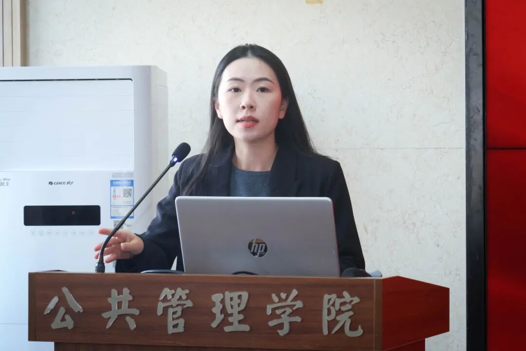 会议第三项,西北大学学生会主席团成员李富蓉致辞。李富蓉同学肯定了公共管理学院学生会、研究生会在思想引领、学术创新、权益服务等方面的优异成绩,赞扬了公管学子的担当与作风。同时并对未来公共管理学院学生工作提出了新的展望和期待,希望公共管理学院(应急管理学院)学生会、研究生会在学院领导、老师的关怀指导下,在同学的理解和支持下,在学生会全体工作人员的共同努力下,持续筑牢思想根基,弘扬务实作风,团结带领广大青年学子将专业知识与国家发展相结合,为学院发展、学校“双一流”建设及民族复兴注入青春动能。