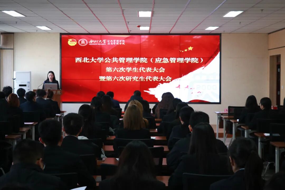 在全院上下高举习近平新时代中国特色社会主义思想伟大旗帜,认真学习贯彻党的二十大和二十届四中全会精神,扎实推进“十五五”规划谋篇布局与编制落实,贯彻落实学校第十四次党代会和第二十一次团代会工作部署之际,西北大学公共管理学院(应急管理学院)第六次学生代表大会暨第六次研究生代表大会于12月10日在西学楼1304多媒体会议室召开。公共管理学院党委副书记韩杰老师、党委组织员杨嘉仪老师、团委书记苏林老师、校学生会代表李富蓉同学、兄弟院系嘉宾及全体学生代表出席本次会议,本次会议由学院专职团干部杨琬钰老师主持。