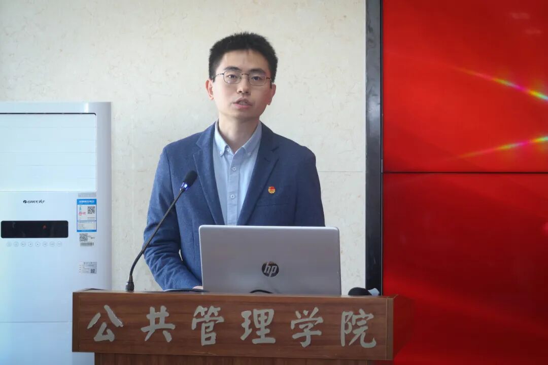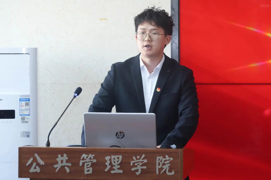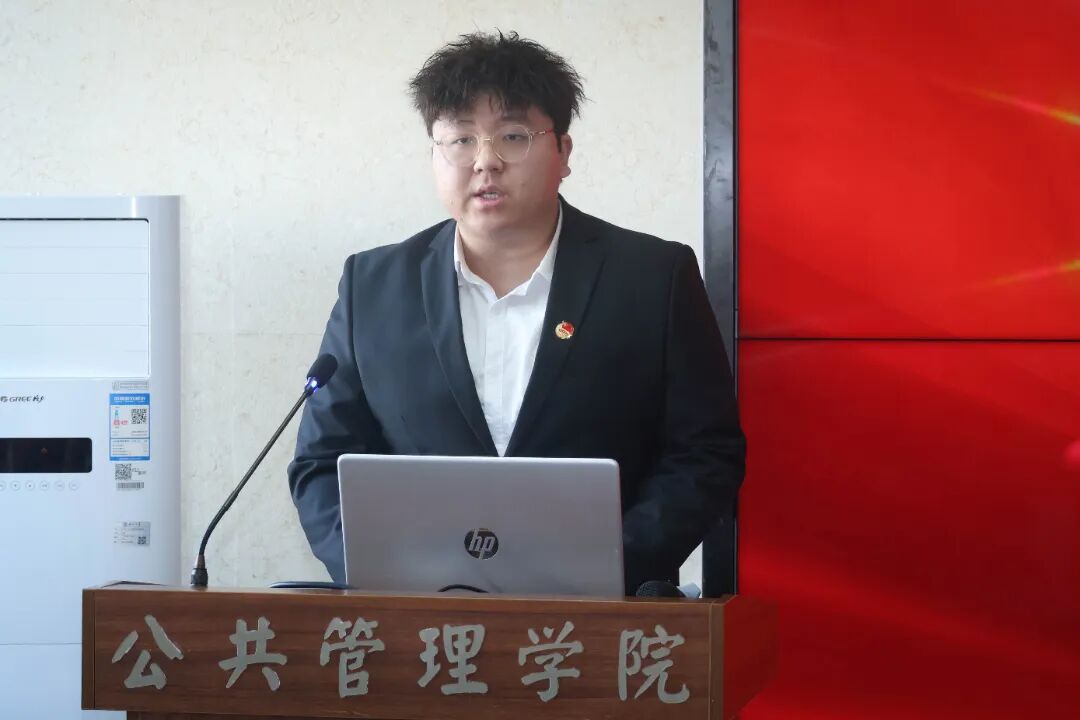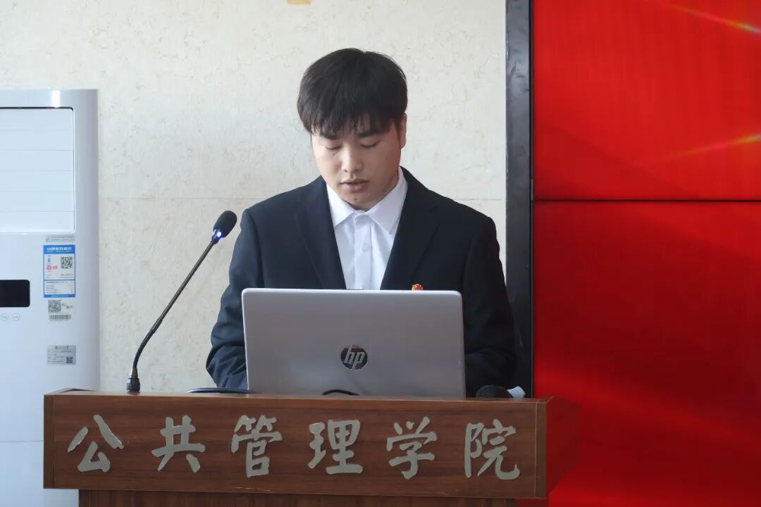 会议第四项,公共管理学院学生会代表史东林同学作学生会工作报告。史东林同学以“浪涌新程奋楫行,青春聚力勇担当,于服务与奉献中展现青年力量”为题,从思想引领、服务需求、自我改革、组织建设及校园活动五个方面总结了我院学生会上一年的工作成果并指出了未来发展方向,强调未来我院学生会将持续推进改革,重点加强思想引领、队伍建设,发挥好桥梁纽带作用。