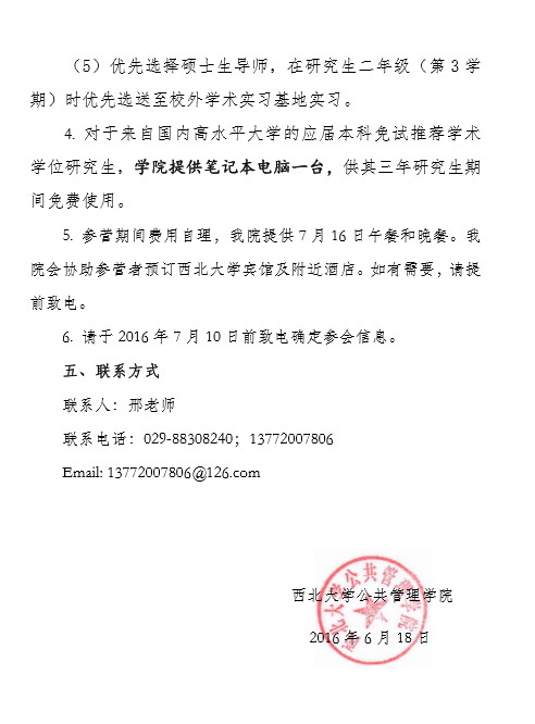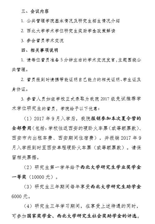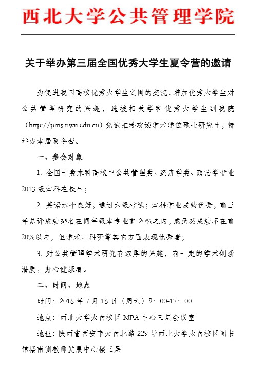 2017年西北大学公共管理学院第三届全国优秀大学生夏令营