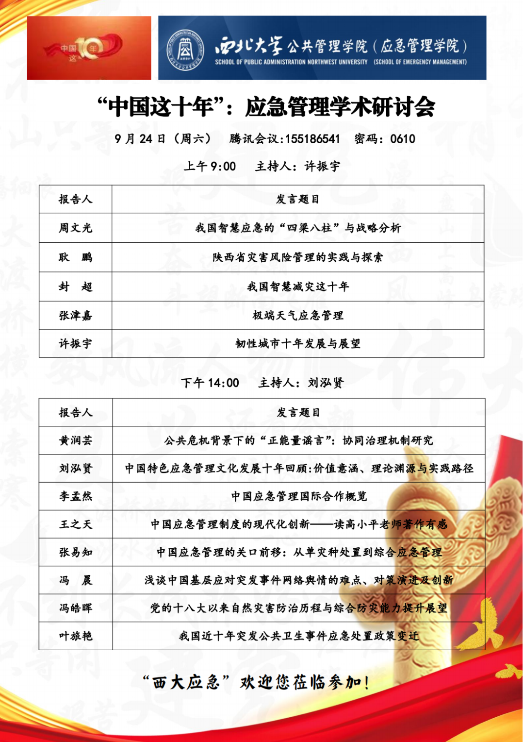 会议预告 | “中国这十年”:应急管理学术研讨会