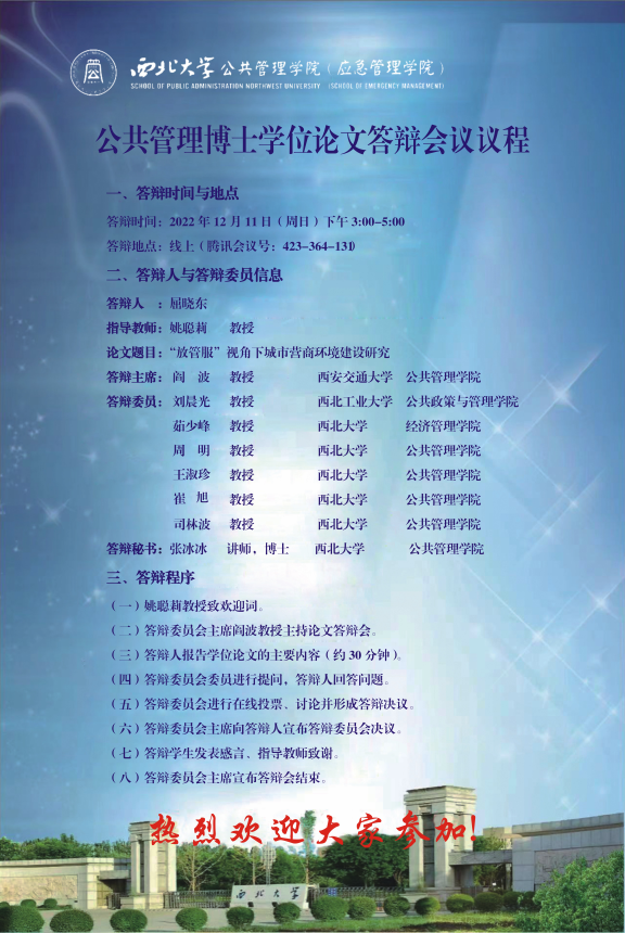 公共管理博士学位论文答辩会议议程