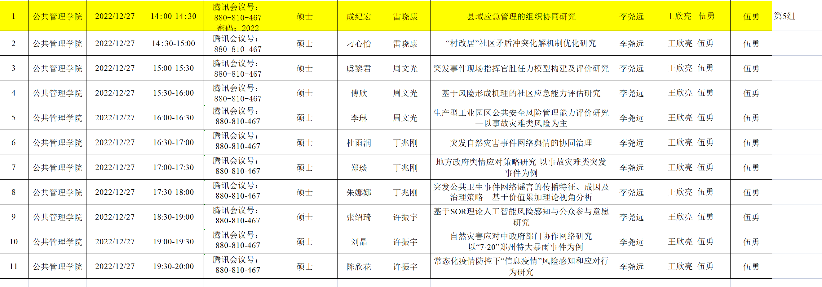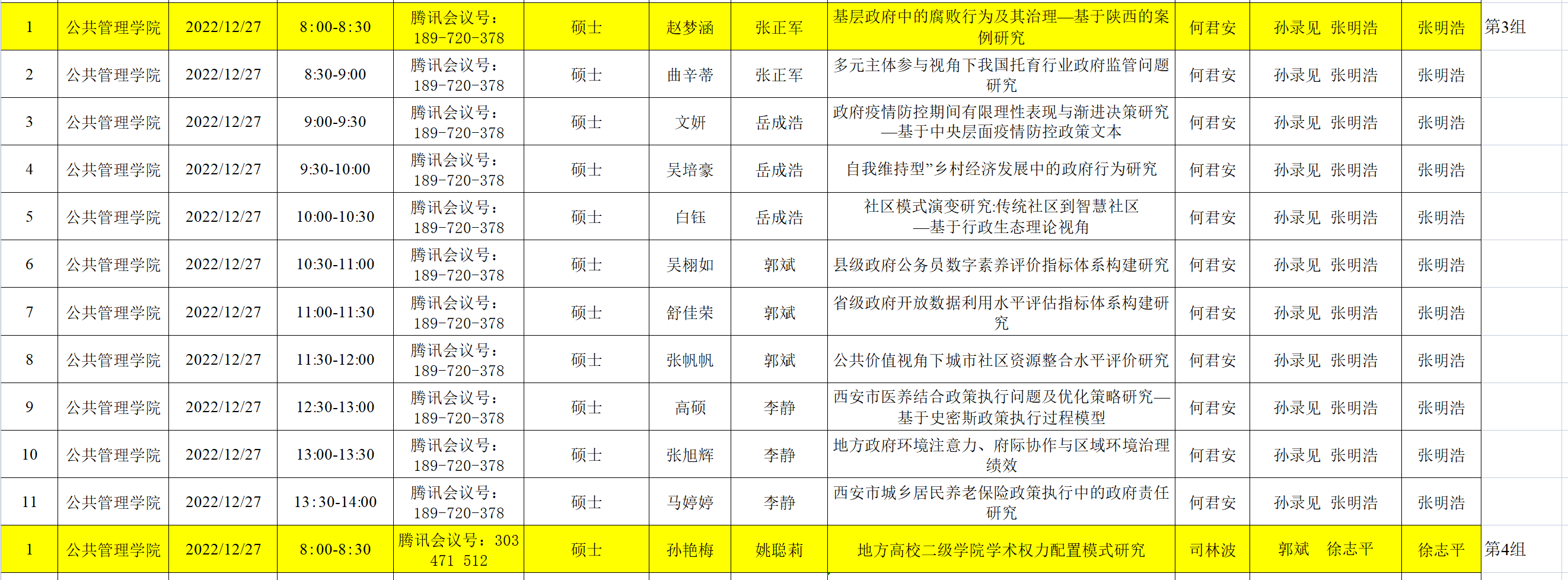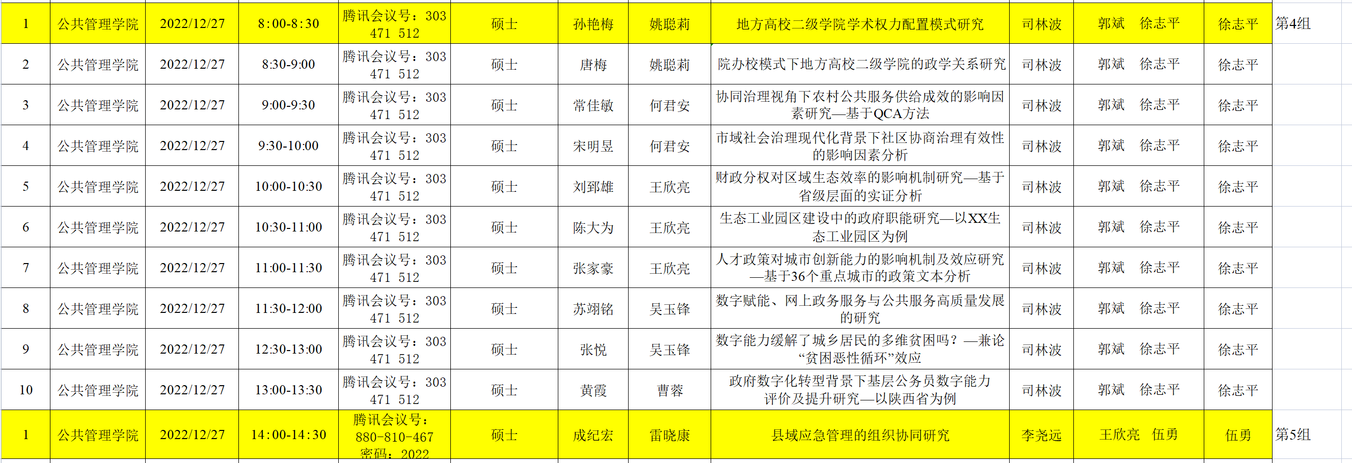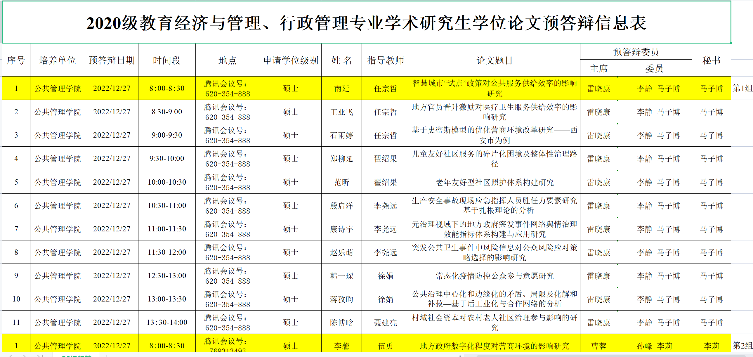 2020级教育经济与管理、行政管理专业学术研究生学位论文预答辩信息表