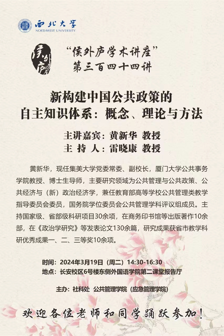 会议预告 | “侯外庐学术讲座”第三百四十四讲 新构建中国公共政策的自主知识体系:概念、理论与方法