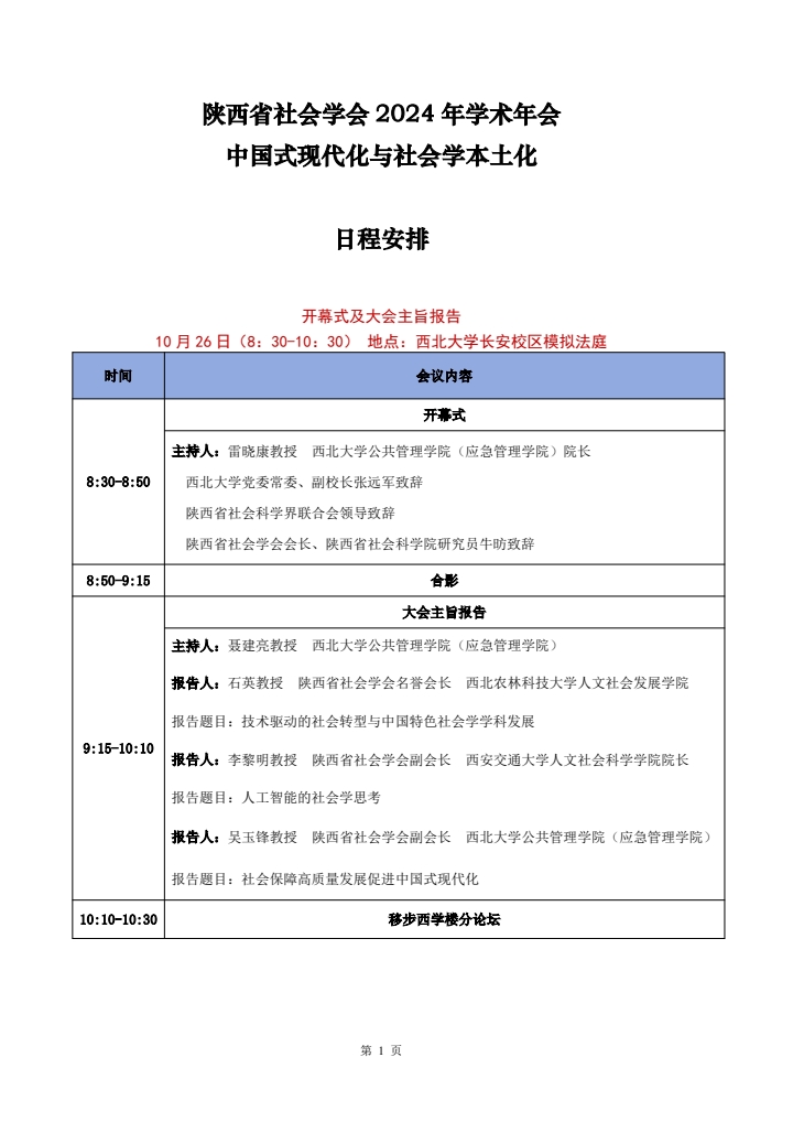陕西省社会学会2024年学术年会会议手册