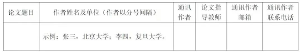 b.作者信息的Excel文件按照具体格式及内容要求填写,如下表所示。