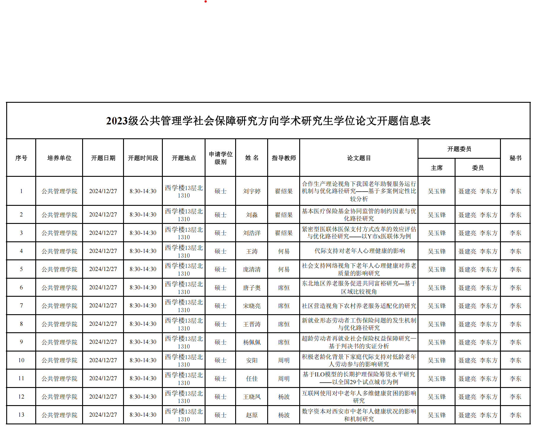 (2023级公共管理学社会保障研究方向学术研究生学位论文开题信息表)