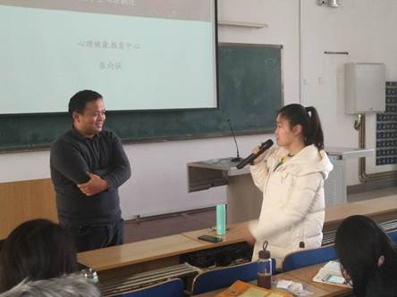 讲座中:从社会热点出发,结合其接触过的心理咨询案例,鼓励大家认清内心的自我,明白真正的 需求。又从探测号拍摄的照片,启示同学们人类如同微尘,我们认为的大烦恼其实是微不足道的