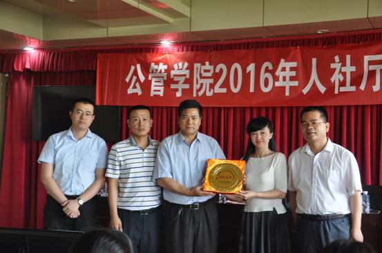 最后,学院寇书记代表西北大学公共管理学院向省人社厅赠予了写有“润物无声”的纪念盘,以此来表达我院师生对省人社厅各位老师最衷心的感谢,感谢他们在实习期中对我院学生“润物无声”的悉心照顾和耐心指导。