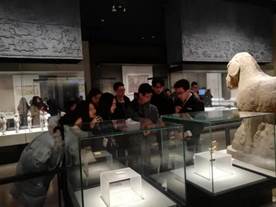 7时30分,全班人员在东停车场集合,乘校车前往陕西历史博物馆。9点钟开始参观博物馆。首先,全班分成两个小组,各个小组在讲解员的带领下依次参观了第一、第二、第三展馆。讲解员按照时间顺序,依次讲解了各个时期朝代出土的文物。其中,讲解员着重讲解了秦兵马俑、彩陶器皿、宗教文物、唐墓壁画等代表文物。无不堪称陕西悠久历史和文化的象征。其次,讲解员重点带领小组成员参观了第四展馆何家村出土的遗宝。