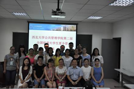 2015年7月15日至7月18日,“西北大学公共管理学院第二届全国优秀大学生暑期夏令营”在我院顺利举行。此次夏令营共收到来自全国50余所高校的100余名优秀大学生报名申请。学院本着公平、公正、公开、择优的原则,经过对申请人材料的认真审核,确定来自吉林大学、江西财经大学、江苏大学、南昌大学等高校的20名大学生入选夏令营。最终有19名学生报到参加了此次夏令营。