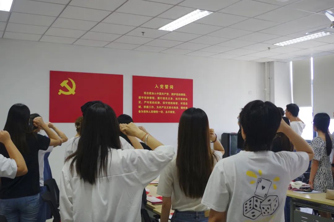 随后,支部全体党员同志面向党旗,在党小组组长谭筱波同志的带领下重温入党誓词,擦亮入党初心,牢记作为一名共产党员的使命担当。