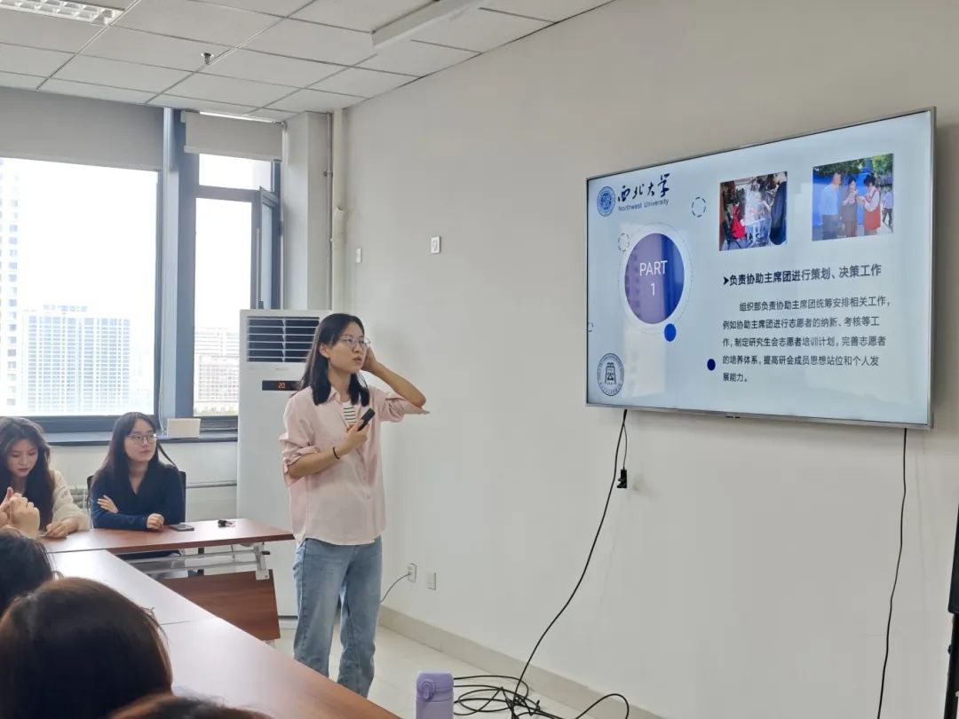 为深入贯彻党的教育方针,增强研究生会成员的历史使命感与时代责任感,同时促进团队凝聚力与协作能力的提升,西北大学公共管理学院研究生会于2024年9月20日在西学楼北1310顺利召开了2024-2025学年第一次全体大会,会议由主席团成员王思齐主持。