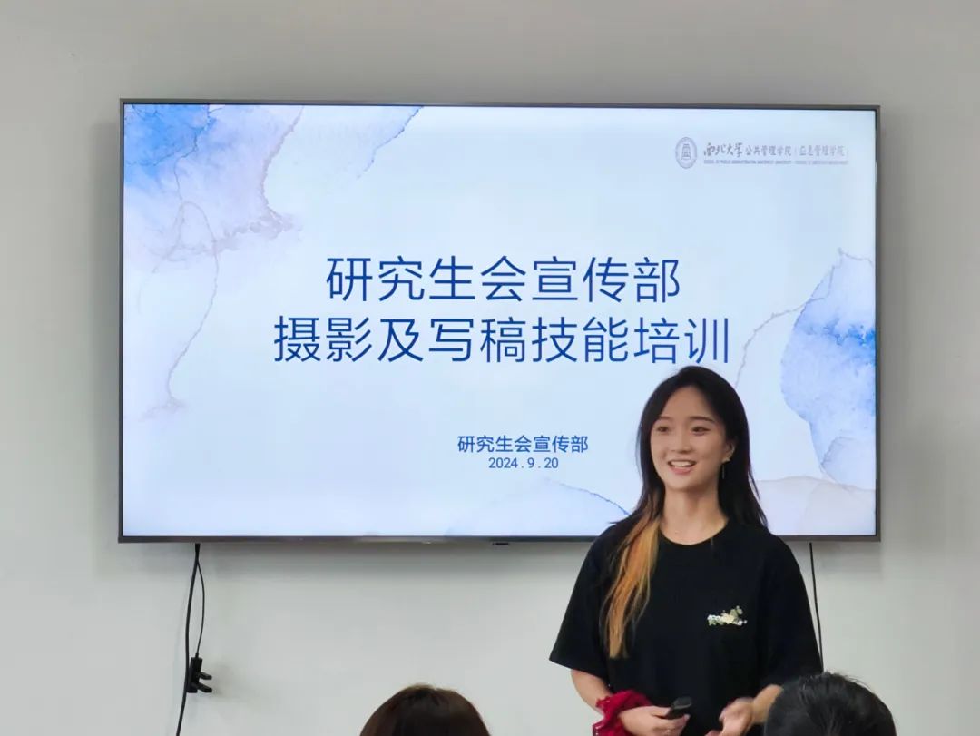 宣传部王丽昕则针对写稿技能培训及活动拍照要求等方面进行专业指导。她不仅分享不同体裁稿件的写作要领和格式规范,还详细讲解如何在各类活动上根据活动特色拍摄出高质量的有效图像,使摄像作品成为传递信息、展示风采的有效载体,助力学院活动的宣传推广。