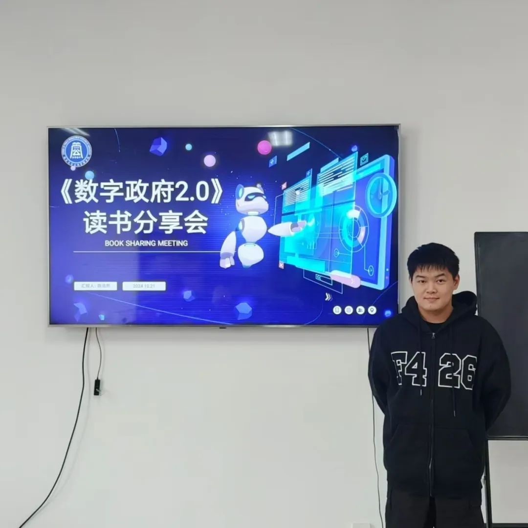2024级应急管理专业硕士研究生陈浩然分享的书籍是张建锋的《数字政府2.0》,他从作品简介、主要内容、案例探讨以及启示与意义等四个部分展开。他首先介绍了数字政府建设关乎数字经济发展,并受到各级政府、企业和广大民众的关注。数字政府2.0的目标是实现从“数字”到“数智”的跨越。张建峰结合自身丰富的实践经验,撰写了《数字政府2.0》,旨在为数字政府的建设提供理论指导和实践参考。其次,他介绍了主要内容,在该书的理论篇中,讨论了从信息技术时代(IT时代)到数据技术时代(DT时代)的转变,以及中国互联网如何成为数字时代转型的创新样板;在基础篇中,从顶层设计、基础设施建设、大中台战略、交互端等方面来重构政府数字架构体系;在应用篇中公共服务便民化,社会治理精准化,利用人工智能算法提供决策支撑和精准化的治理能力,经济决策智能化的应用使政府政务服务零界限,让人民共享数据红利。同时,在他的演讲中还引用一个十分生动的案例“浙江模式”来分析数字政府建设的进展。最后,他提到数字政府建设有推动社会治理的精细化,经济决策的智能化等重大意义。