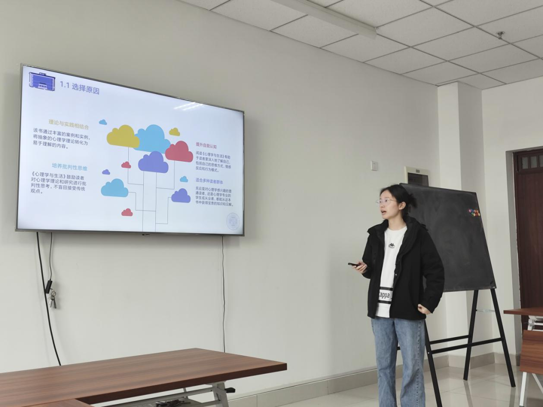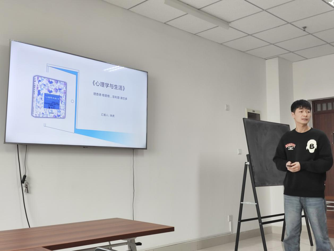 2023级应用心理学专业硕士研究生宋虎分享的是理查德.格里格;菲利普.津巴多《心理学与生活》,该同学主要从斯坦福监狱实验引入介绍心理学的相关知识,介绍了本书以16章的篇幅,系统介绍了心理学的基本概念、理论及研究成果,涵盖了心理学的多个分支,包括感觉和知觉、学习、记忆、认知过程、智力、发展心理学、动机、情绪、压力和健康、人格、心理障碍、心理治疗以及社会心理学等。同时该书强调心理学知识在现实生活中的应用,包括对政策制定的影响。书中讨论了心理学研究如何帮助我们更好地理解人类行为,进而指导政策实践,尤其是在健康、教育和社会服务等领域。最后分享了自己的读后感,这本书的风格贴近生活,并且深入实践,书中讲述了大量的实际案例和实验研究。此外,这本书语言平实,避免使用过于过多专业的术语,通俗易懂,因此非常适合一般大众了解心理学。