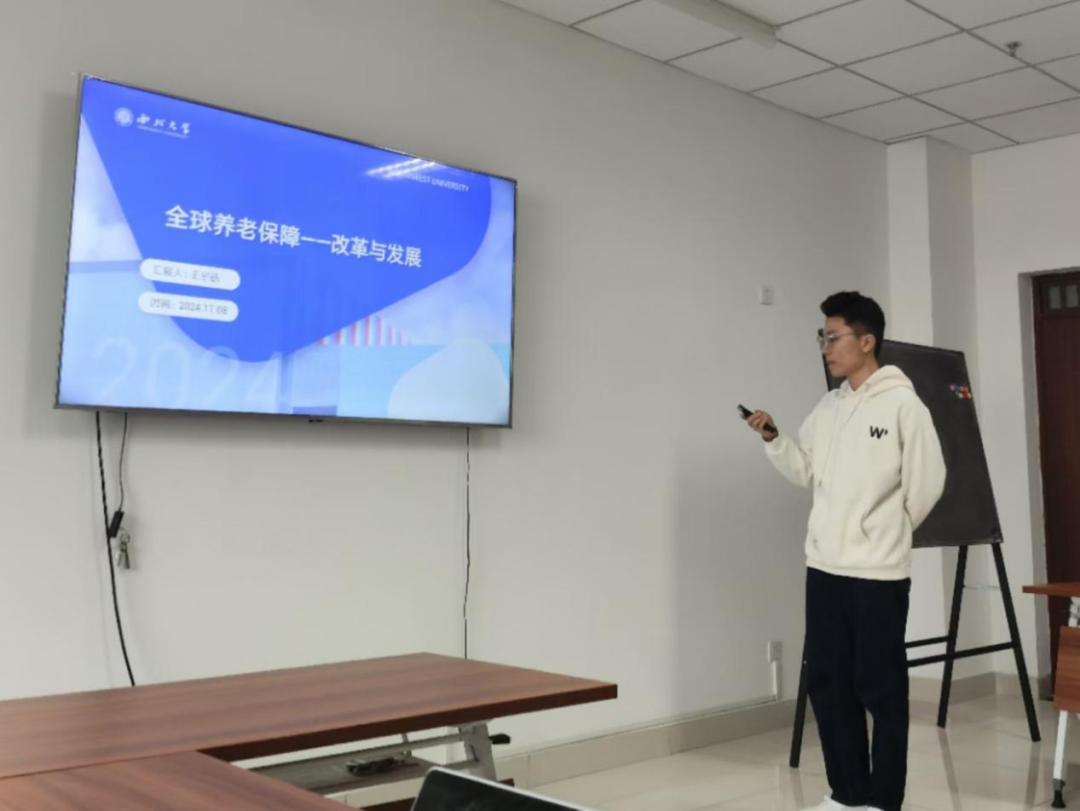 2024级社会保障专业硕士研究生王宇航分享的书籍是科林·吉列恩的《全球养老保障-改革与发展》,他主要从整体框架、养老保障结构与存在问题、改革:养老保障可持续发展性研究以及政策实践四方面内容进行分享。首先他对书籍的整体内容进行介绍,本次分享主要介绍了本书的第二编养老保障机构与存在问题以及第三编改革-养老保障可持续发展性研究。在养老保障结构与存在问题方面,主要分享了他对养老待遇、病残津贴和遗属抚恤金、养老与社会救助、养老保障筹资制度、养老基金投资管理、养老保障覆盖范围及其缺陷、社会养老保障管理及机构设置、逃费问题、养老金的转移支付和收入再分配、个人面临的风险、经济/财政影响的思考。接着分享了第三编:改革-养老保障可持续发展性研究中的内容:制定养老保障政策的基本原则、扩大养老保障覆盖面、监督机制、管理和法律实施、退休年龄的影响、多元化设计和弹性结构以及、改革进程和政治管理。最后基于之前两部分内容提出了自己对政策实际的思考,本书中提到延迟退休的思想,在我国政策中得到了实践,总的来看,与书中提到的多元化制度设计思路不谋而合。本书详细介绍了养老保障管理实践的方方面面,提供了大量的实证分析,如制度结构、各国养老保障制度运行的机制,包括收缴养老保险费、计算公式、待遇发放、养老资金的投资运营等,最重要的是养老保险缴费率和养老金的替代率等。既为我们展示了本世纪初国际学者对社会保障制度的思考,也为我们现在的制度设计提供了发展思路。