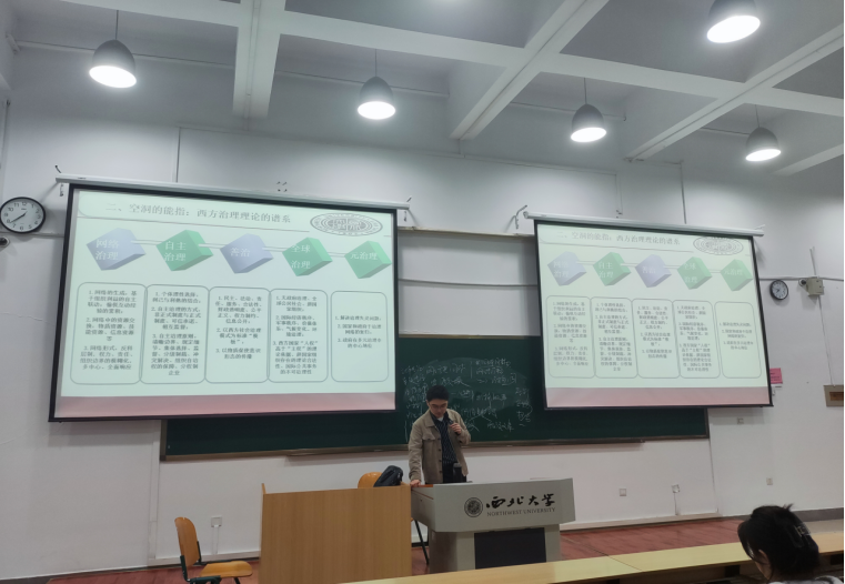 2024年11月20日晚18:00,西北大学公共管理学院马子博讲师在4J301教室为我院2024级全体硕士研究生作了题为“治理理论的西方谱系与中国叙事”的专题讲座。