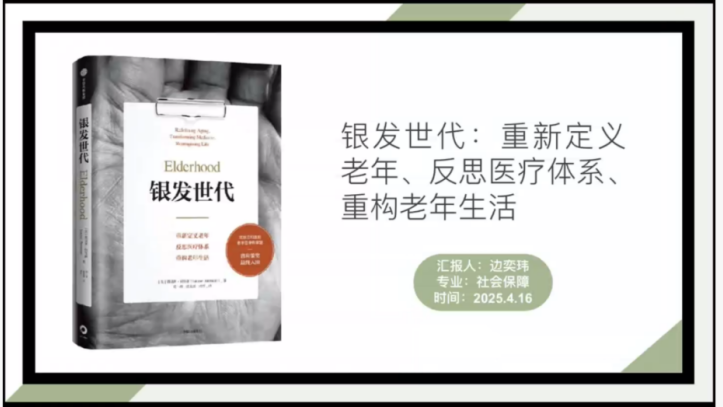 2024级社会保障专业硕士研究生边奕玮分享了路易斯·阿伦森的《银发世代:重新定义老年,反思医疗体系,重构老年生活》一书。她介绍到本书作者从医学、人文和社会结构多维度出发,指出当代社会虽然在延长寿命方面取得巨大成就,但仍未能构建与之匹配的老年生活支持体系。面对当前社会对老年群体仍然存在的一种“微侵略”歧视现象,应该将老年医学从“疾病管理”提升为“生命质量工程”,关注老年患者的综合需求。边奕玮同学提到“衰老并非失败”,而是一种社会建构的偏见。在传统认知中,老年常被等同于衰退与负担,但研究表明,60岁以上人群的幸福感普遍高于中青年,应从文化、政策和技术层面重塑老年人的社会价值。此外,面对当前医疗体系中“技术至上”所带来的异化问题,需要通过人性化医疗、跨学科合作、适老科技等手段提升老年人的生活质量。同时,也应推动构建延迟退休的配套制度、社区支持网络与包容的社会叙事环境来鼓励老年人发挥自我价值,消除社会中的年龄歧视现象。