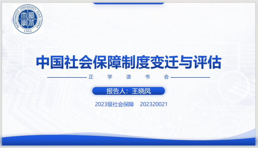2023级社会保障专业硕士研究生王晓凤分享了郑功成的《中国社会保障制度的变迁与评估》一书。首先,她对该书的作者和著作背景进行了简单的介绍。接着,她对该书的逻辑框架进行讲解。该书以新中国社会保障制度为研究对象,首次从历史纵深与政策评估的角度,对中国以往50年来社会保障制度的变迁与近20年的改革进行了系统的总结与评论,同时根据中国现阶段的形势与发展趋势提出了自己的发展建议。全书由中国总体社会保障制度、养老保险制度、医疗保险制度、失业保险制度、社会救助制度、农村社会保障制度、女性社会保障制度和社会福利制度的变迁与评估,以及中国社会保障制度50多年来的重要事件索引、中国社会保障发展数据资料整理等内容组成。她分别对这些章节的主要观点内容进行了分享。最后,她也表达了自己的思考与理解。制度是在不断发展和完善的过程中逐步变得更好,在未来的建设中,需要不断总结历史经验教训,积极探索更完善的制度模式和运行机制,不断适应社会发展的需要。