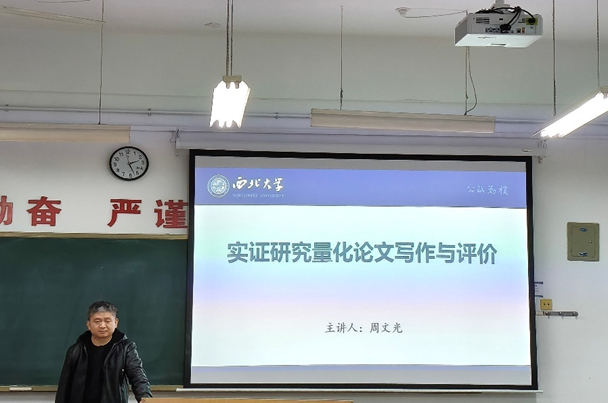 为扎实推进学术活动月“厚植学术根基、提升科研素养”的核心宗旨,搭建理论与实践深度融合的学术交流平台,帮助研究生破解量化论文写作难题,2025年12月1日下午14:30,西北大学公共管理学院周文光老师在多媒体教室,为2025级硕士研究生带来了题为“实证研究量化论文写作与评价”的专题讲座。讲座聚焦学术研究核心能力培养,既是学术活动月“以讲促学、以学促研”理念的生动实践,也为同学们深耕公共管理领域研究提供了精准指导。